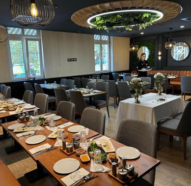 Für Geschäftstreffen, Jahresabschlussfeiern oder Teamevents bieten wir speziell zusammengestellte Menüs in professioneller Atmosphäre. Unsere ruhige, helle und moderne Umgebung, kombiniert mit einem erstklassigen Service, bietet Ihnen und Ihren Gästen ein stilvolles und angenehmes Erlebnis.